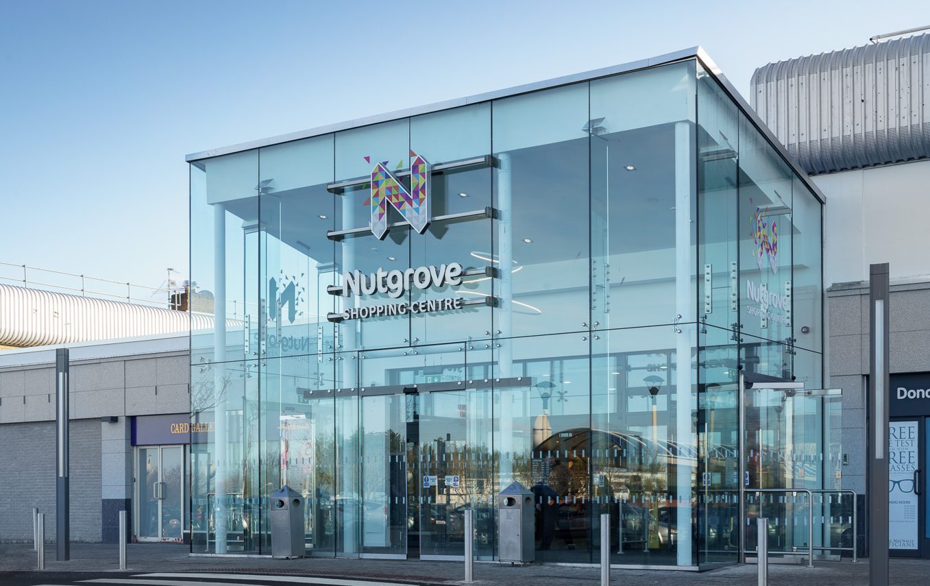 Nutgrove Shopping Centre Façade Upgrade works are now complete, delivered under budget to a high-quality finish by Lafferty Architects. The aim of this project was to create a new contemporary image for the centre by de-cluttering the main façade and giving it a clean, modern appearance with high quality materials. Glazed double height lobbies were added to both main entrances of the centre, acting as a focal marker to the customer as well as improving internal conditions in the mall areas. As well as this, general improvements were made to the pavement area in front of the centre.